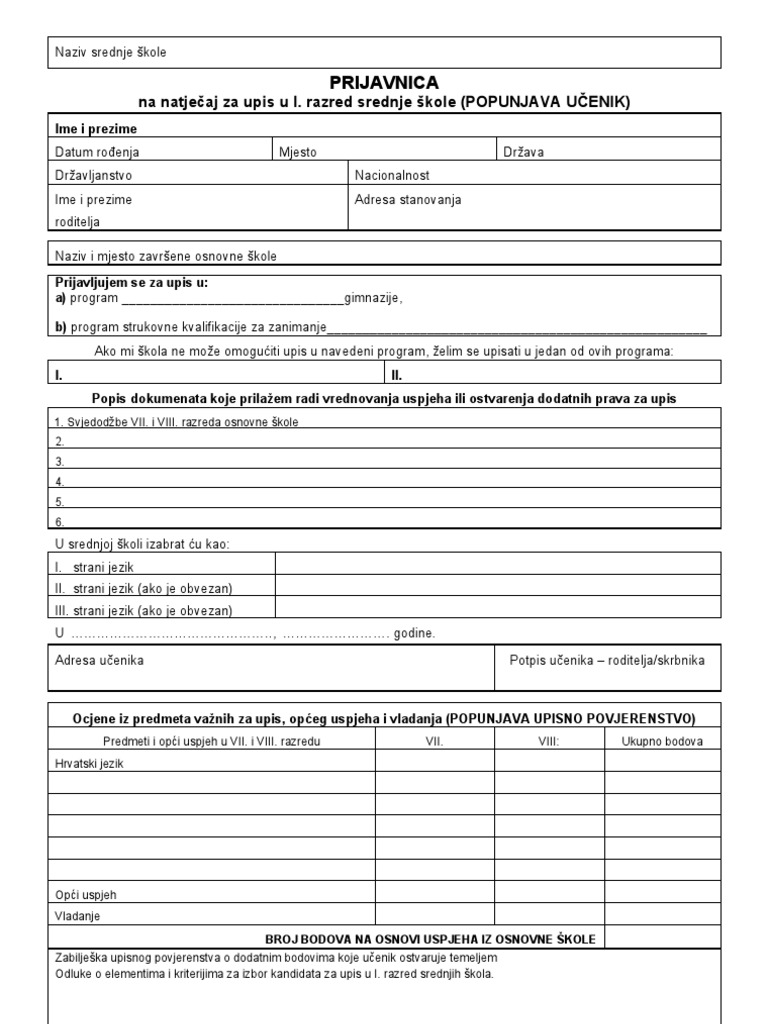 Upisnica I Prijavnica Za Srednju Školu. Upisnica za srednju glazbenu školu. Godinu, okvirni broj slobodnih mjesta za jesenski upisni rok se nalazi se ovdje.