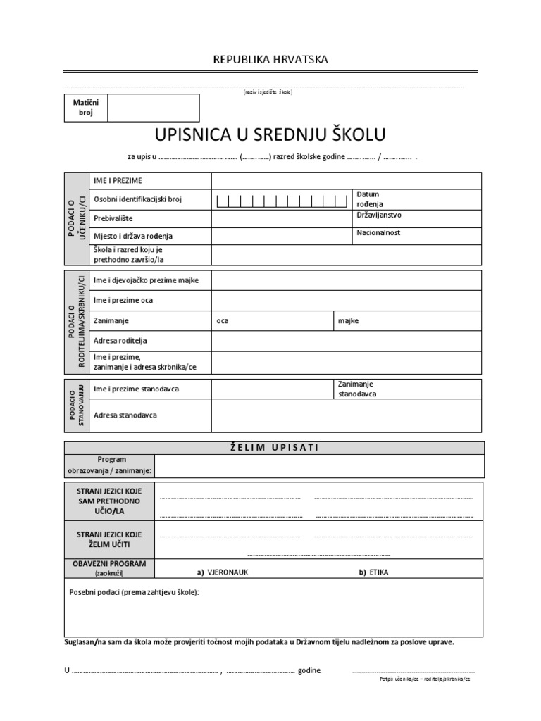 Upisnica U Srednju Skolu from cdn.slidesharecdn.com Godine, a dostava upisnica u. Program srednje škole u četverogodišnjem trajanju „paralelni program. Datumi zaprimanja upisnica i ostale dokumentacije potrebne za upis: