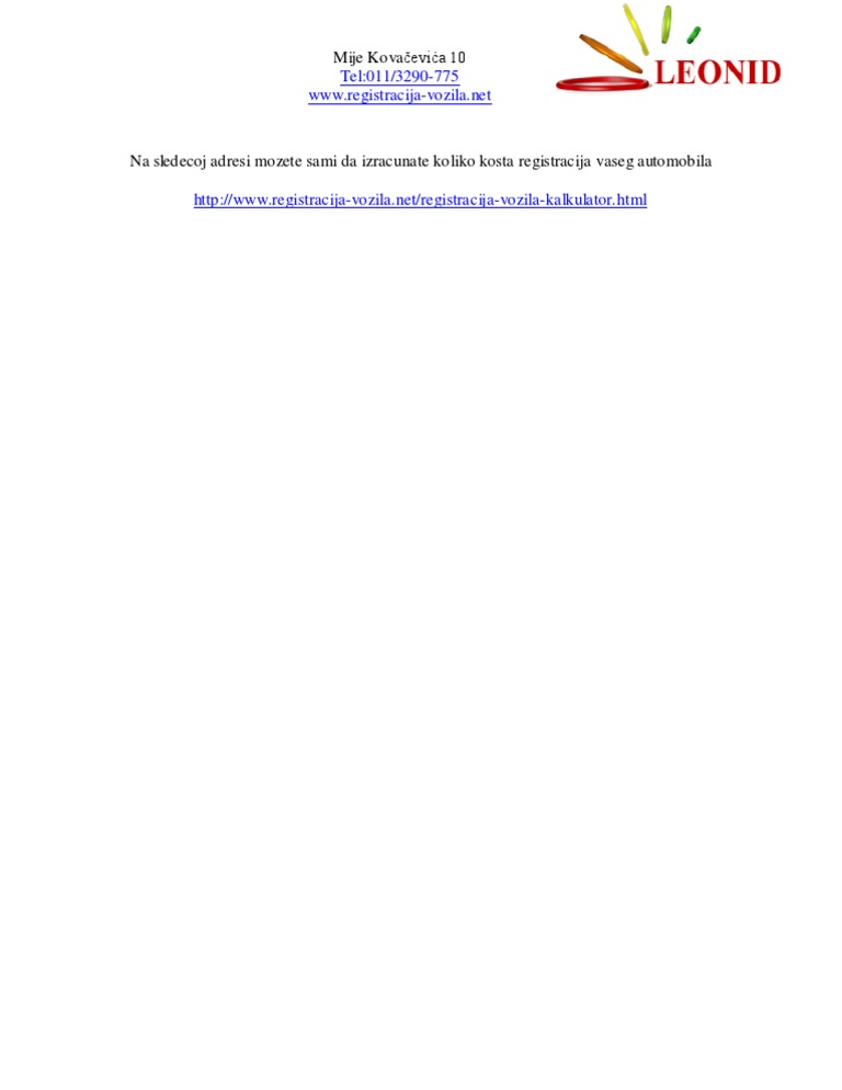 Kalkulator registracije vozila sa tačnim iznosima troškova registracije za celu srbiju.