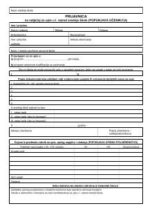 Upisnica u srednju školu za upis u 29 svi 2015.